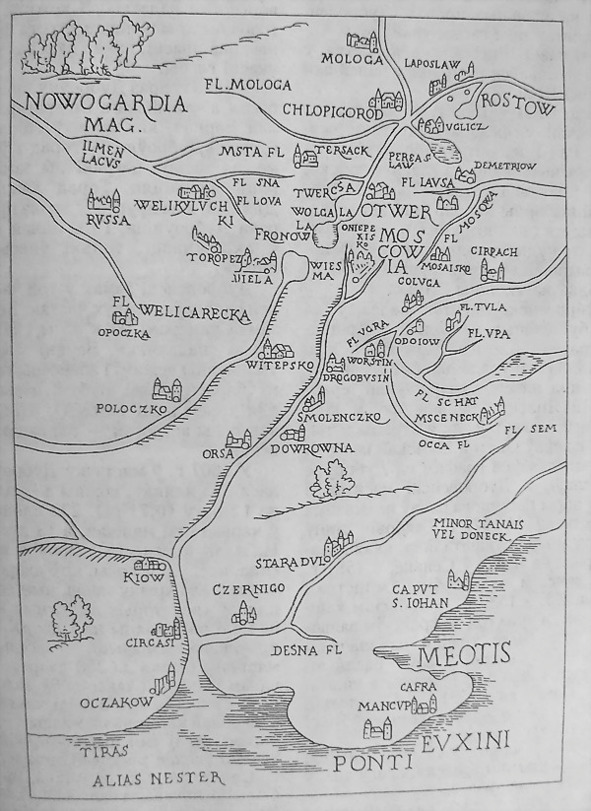 Фрагмент карты 1556 г. по Герберштейну. Источник: http://shtetle.com/Shtetls/dubrovno/dubrovno.html