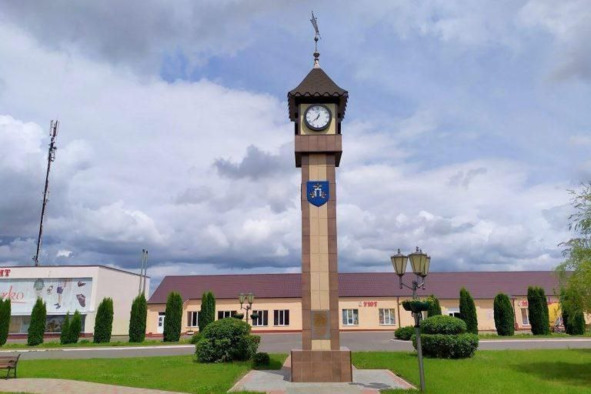 Башня с часами в центре г. Дубровно Витебской области Республики Беларусь. CC BY-SA 4.0 Без изменений. Источник: https://ru.wikipedia.org/wiki/Дубровно