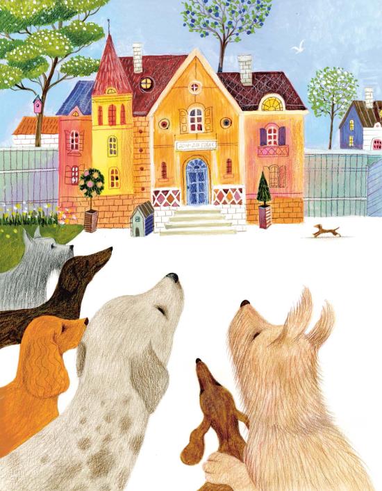 Добрый Тим построил прекрасный дом, повесил над крыльцом табличку с надписью «Дом для собак» и пригласил туда жить всех потерявшихся псов. К новому приюту выстроилась очередь из бродячих собак: все знали, что тут им будет тепло, сытно, весело и что больше никогда не придётся замерзать в одиночестве под снегом или дождём.
