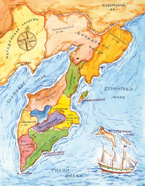 Далеко на востоке России есть полуостров Камчатка. По форме он похож на рыбу, но у рыбы один хребет, а у Камчатки два: Восточный и Срединный горные хребты.