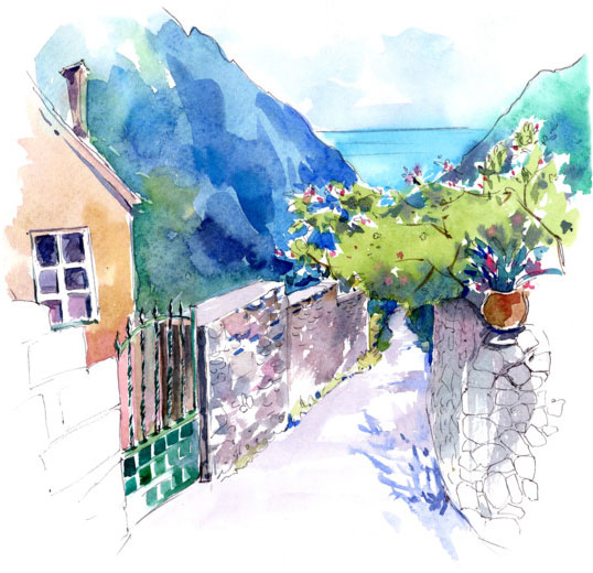 Аккуратные чистые улочки. Пальмы. Домики, по прабабушкиным рецептам построенные. Собака где-то пролаяла. Петух прокукарекал. Большой и старый эвкалипт. Невысокие, выложенные камешком заборы. Ящерицы, по этим заборам греющиеся. Птички поют. Цветы. Сувениры. Деревянные саламандры. Керамические разноцветные петухи. Мармелад. Кактусовый сок. Терраса. С видом на закатное солнце в проеме ущелья между скал. Пора…