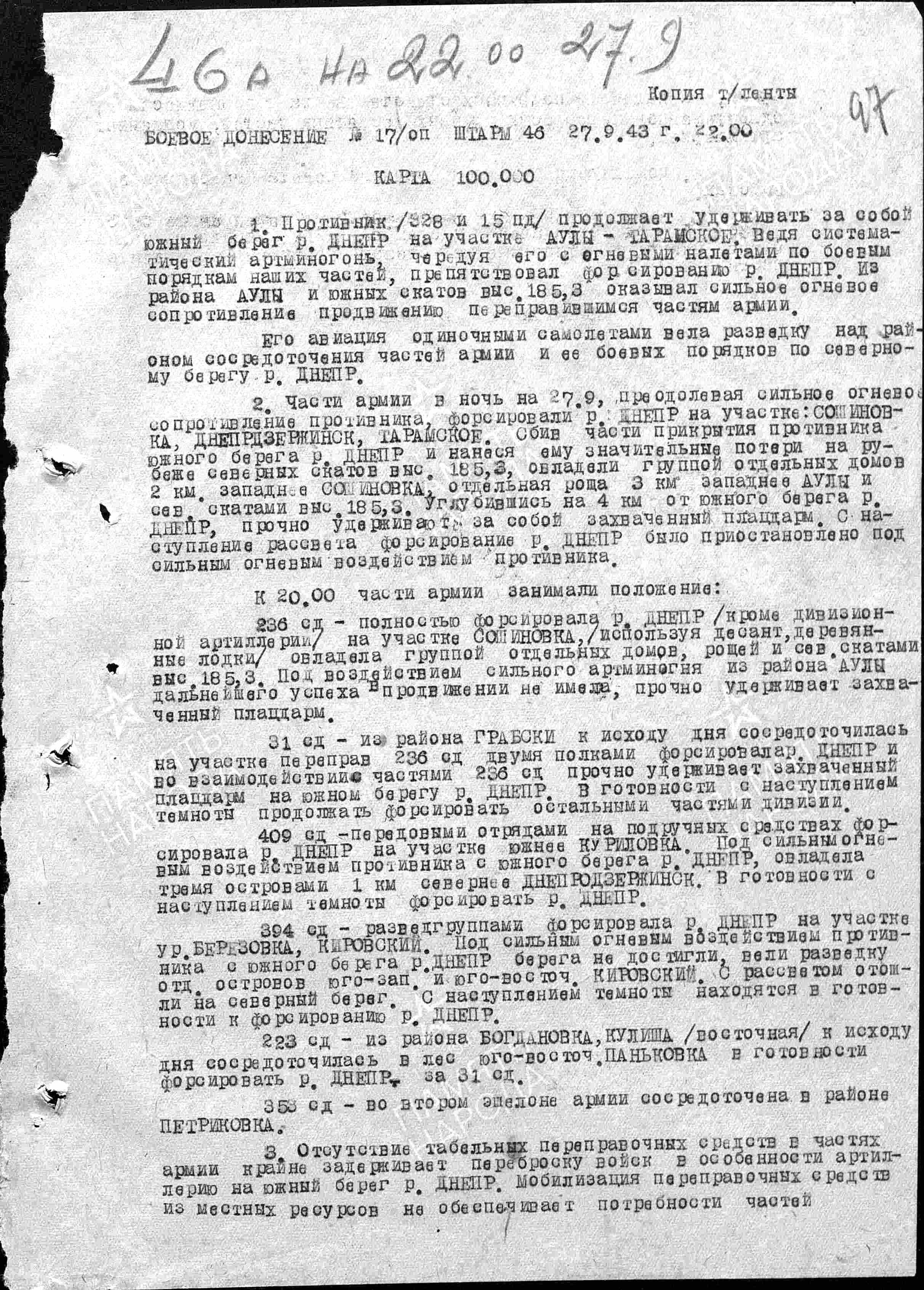 d28. Оперативная информация штаба 46 А на 22–00 27.09