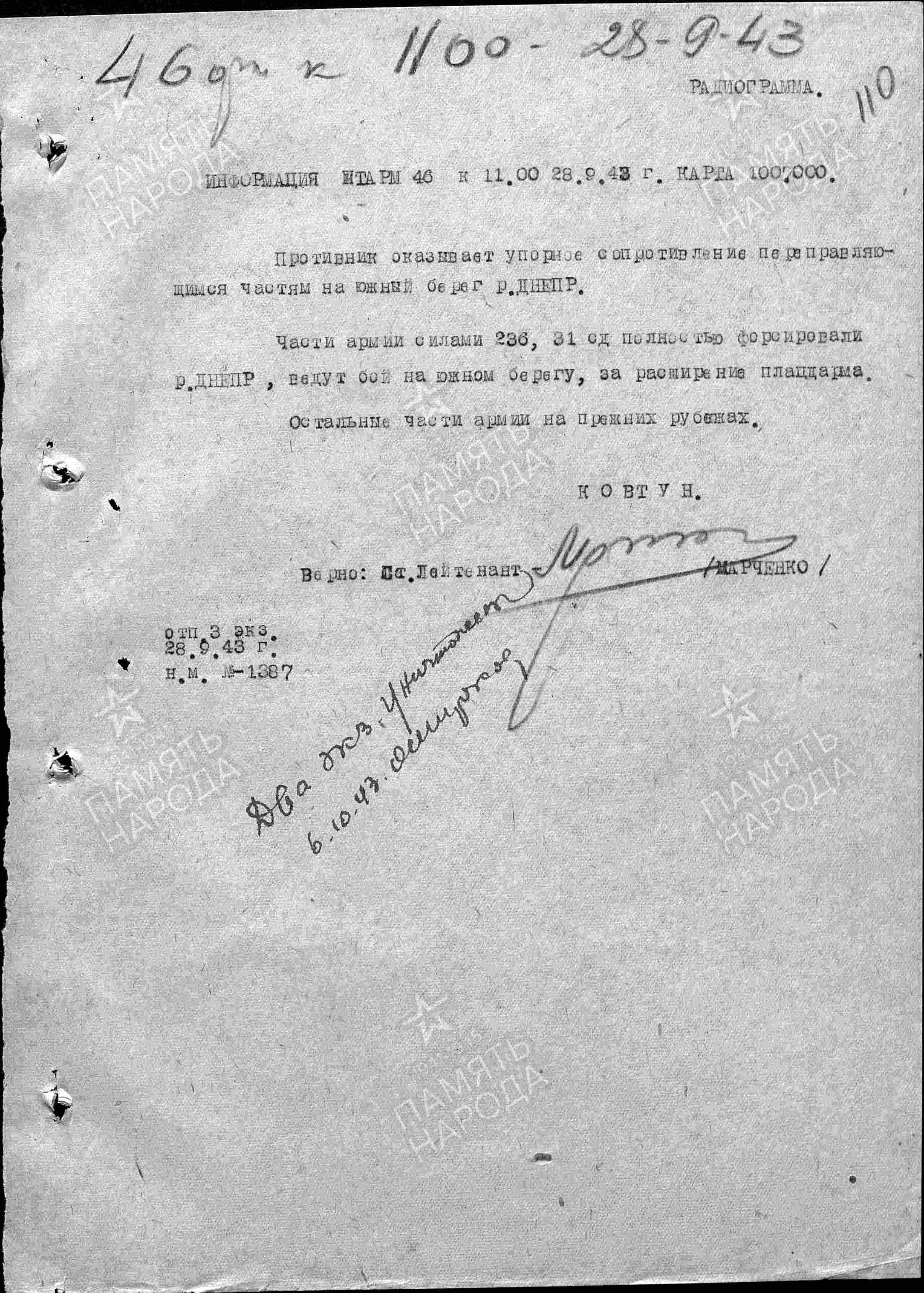 d29. Радиограмма штаба 46 А на 11–00 28.09