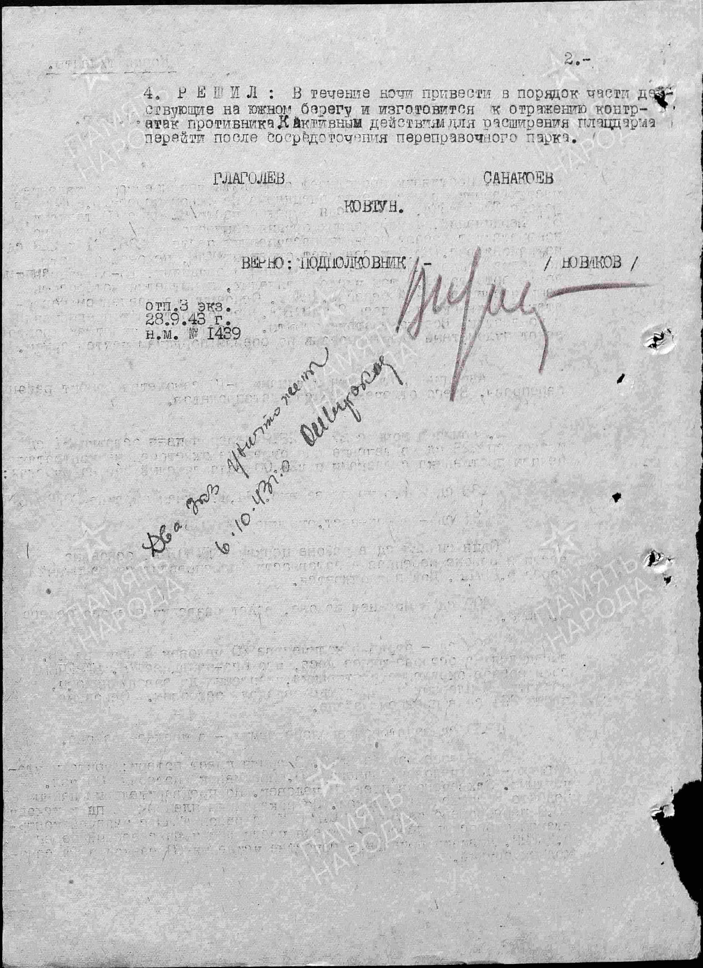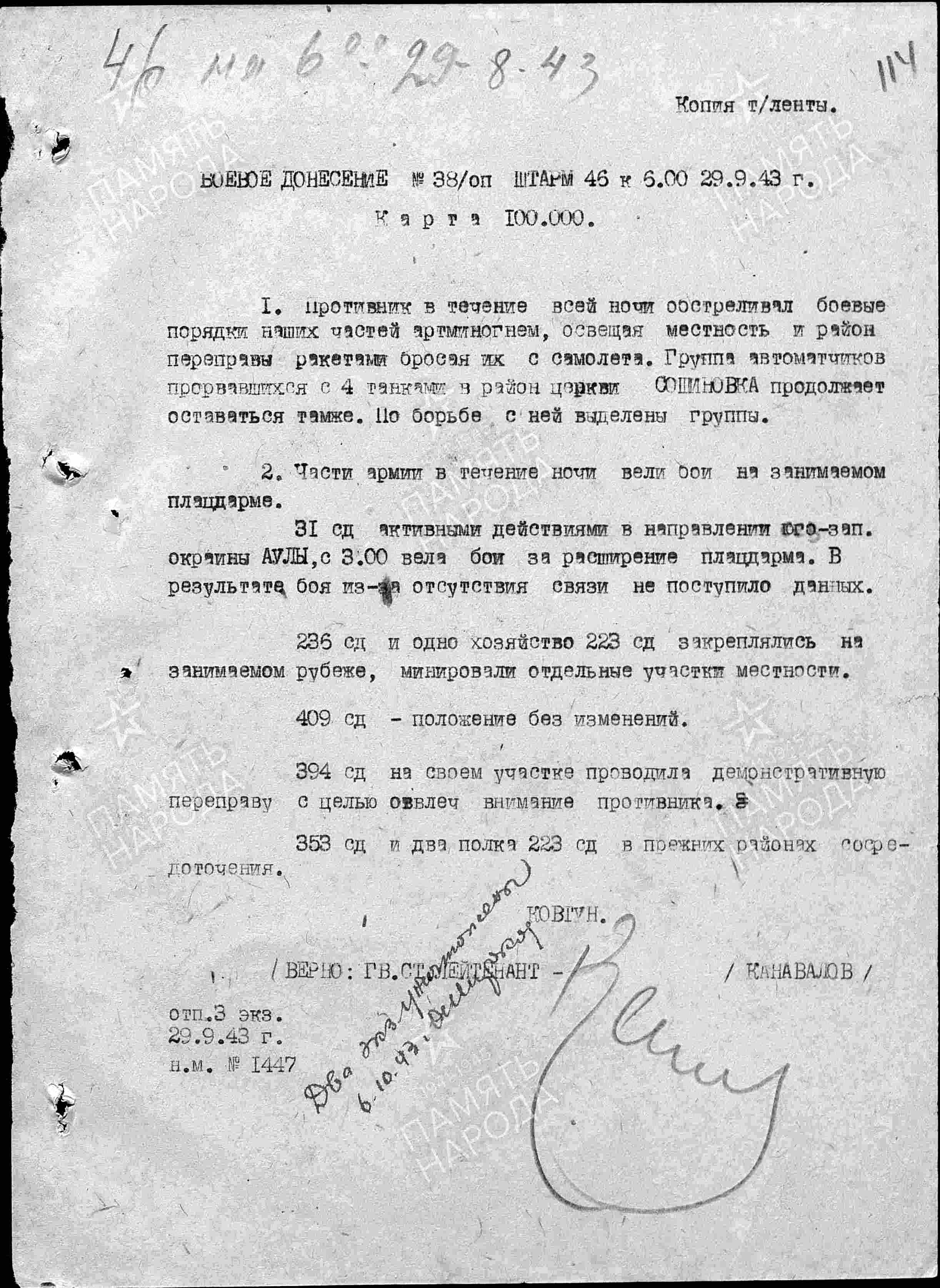 d38. Боевое донесение от 25.09.43 года, 15–00 командира 509 СП
