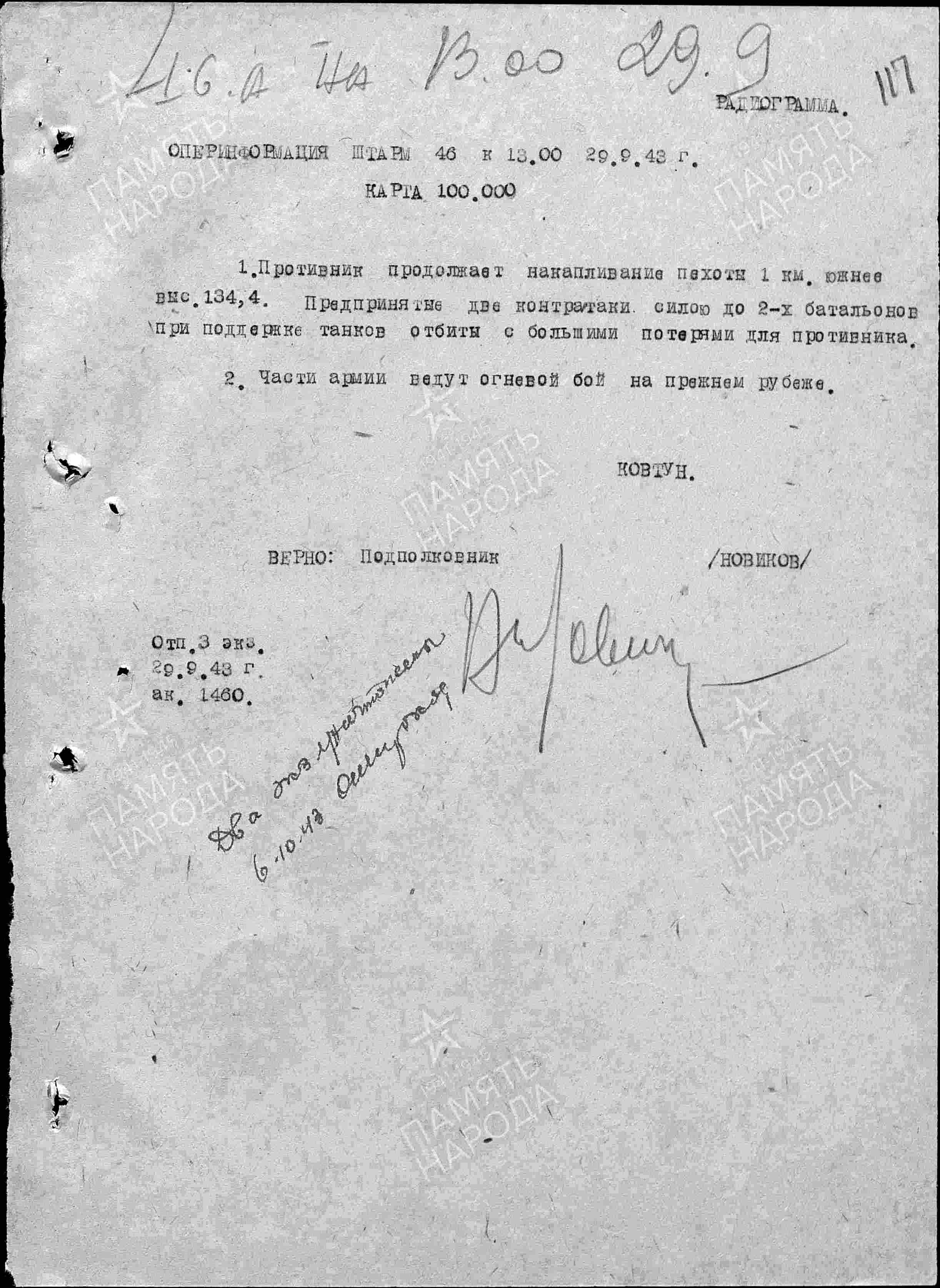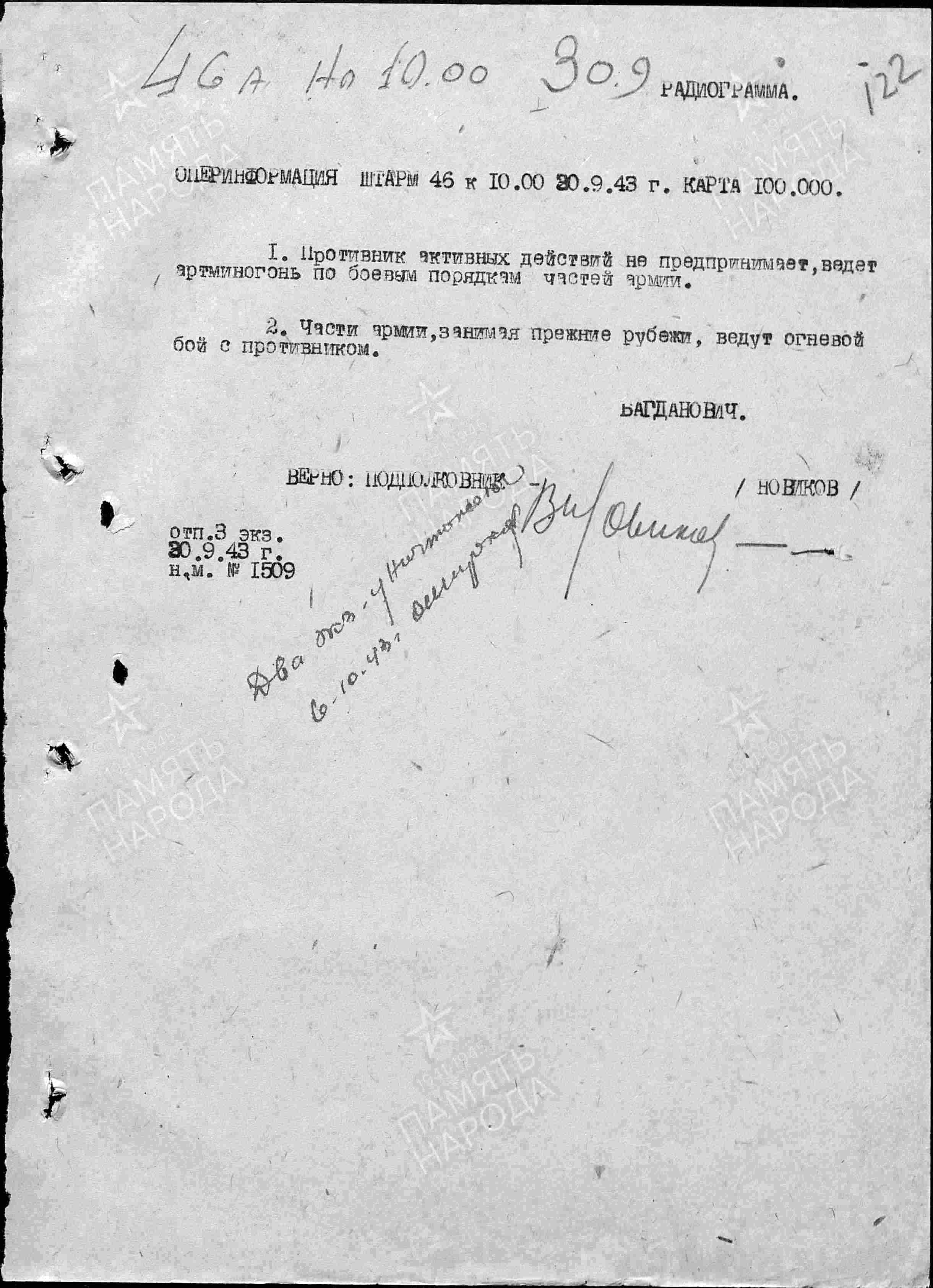 d37. Оперативная информация штаба 46 А на 20–00 30.09