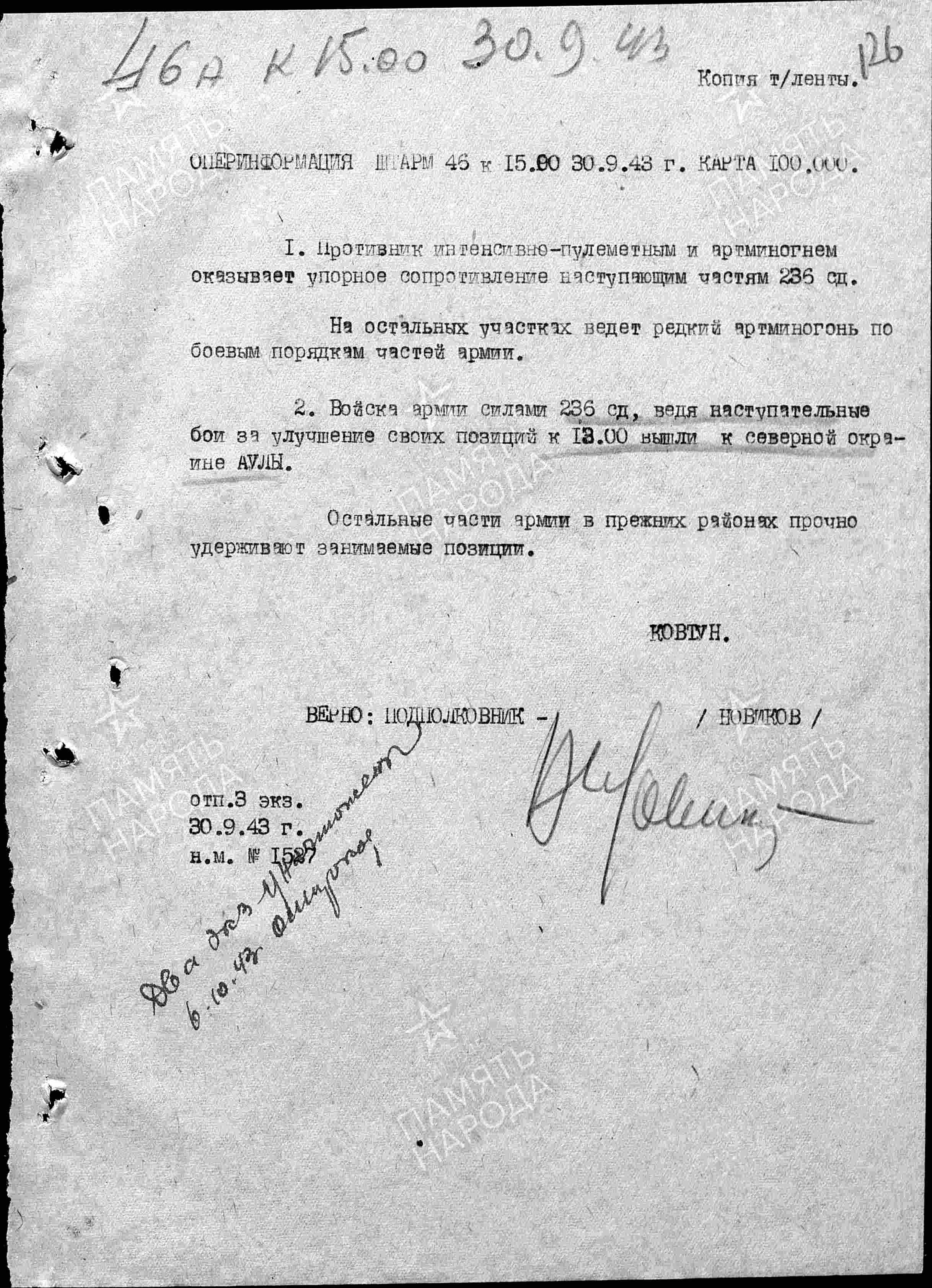 d36. Оперативная информация штаба 46 А на 15–00 30.09.