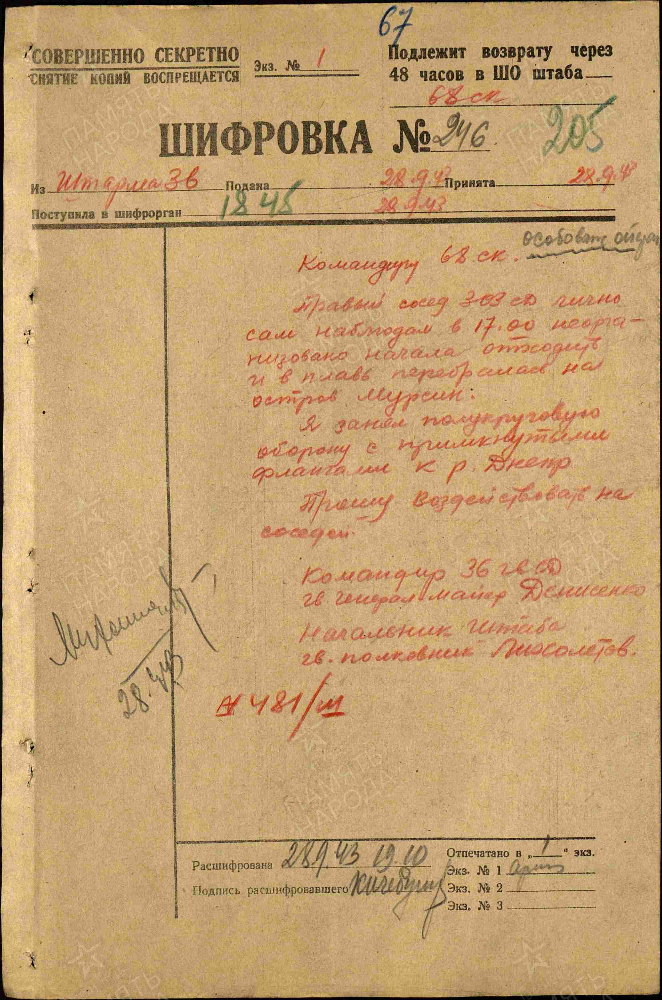 d39. Шифровка № 246 командира 36 СД от 28.09