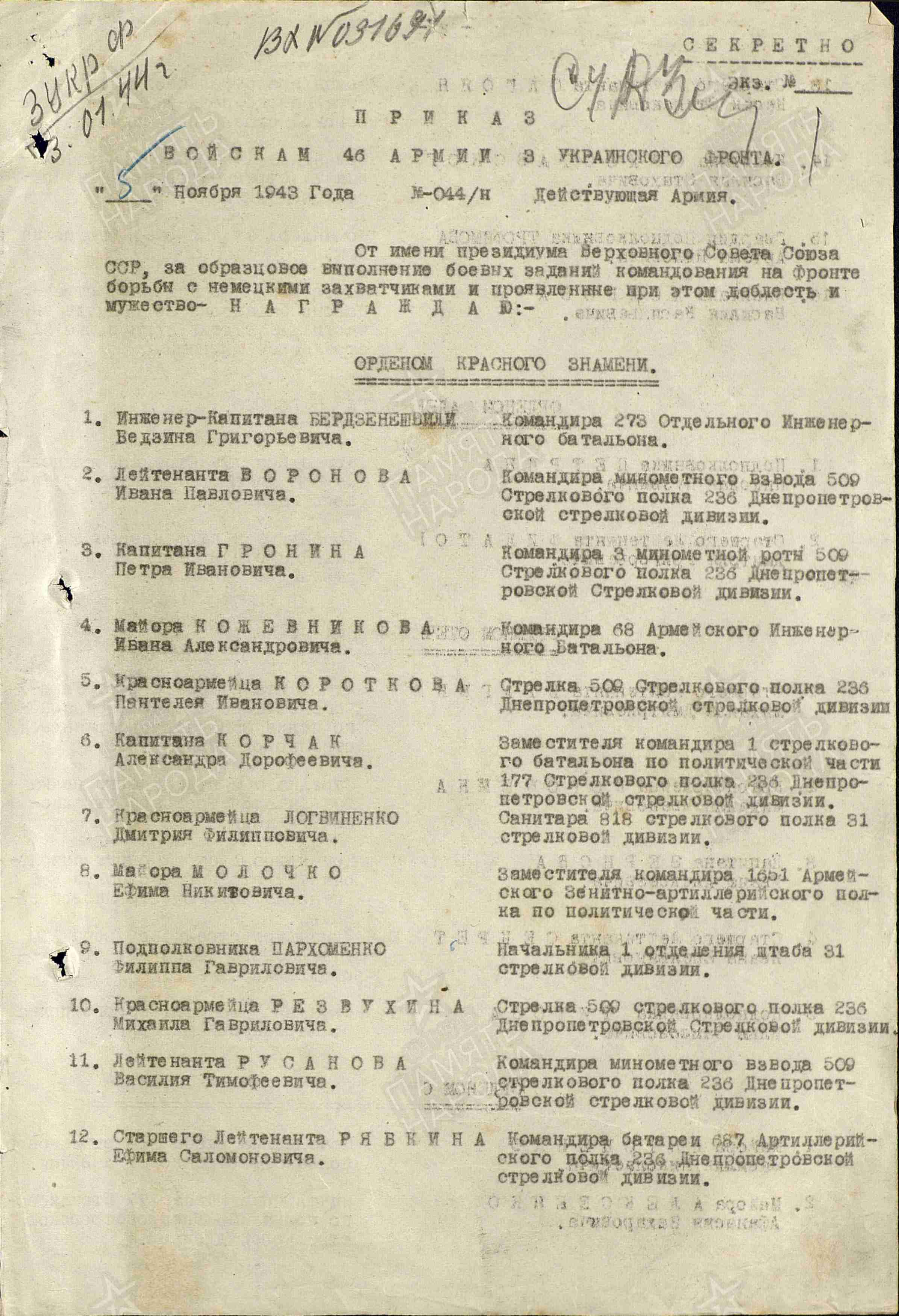 d41 Приказ войскам 46 А 3 Украинский фронт № 044/н от 05.11.43 года