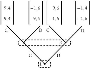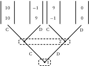 Кроме того, в игре 5 игроки всегда имеют возможность гарантировать, что самое худшее, что они могут сделать, это результат {потрава, потрава} из игры 1. Они не зависят от точности информации, получаемой удаленным от места событий правительственным чиновником, оценивающим их стратегии. Если один игрок предложит контракт, базируясь на неточной или неполной информации, другой игрок выразит свое несогласие. Они выработают свой собственный контракт и призовут того, кто осуществляет силовое принуждение к его исполнению только в том случае, если они оба согласны на это. Если эта инстанция решит брать за свои услуги слишком много (любую сумму, большую либо равную величине Pi (C, С) – Pi (D, D,) i = 1,2), то на такой контракт не согласится ни один игрок.