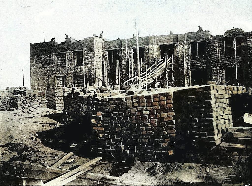 Фото №8 (архив Дорожевца А.Н.). Весна 1939 г. – Идёт строительство казармы 22-го Колымского стрелкового полка ВВ НКВД. Наверное, это самая ранняя фотография будущей Дебинской больницы.