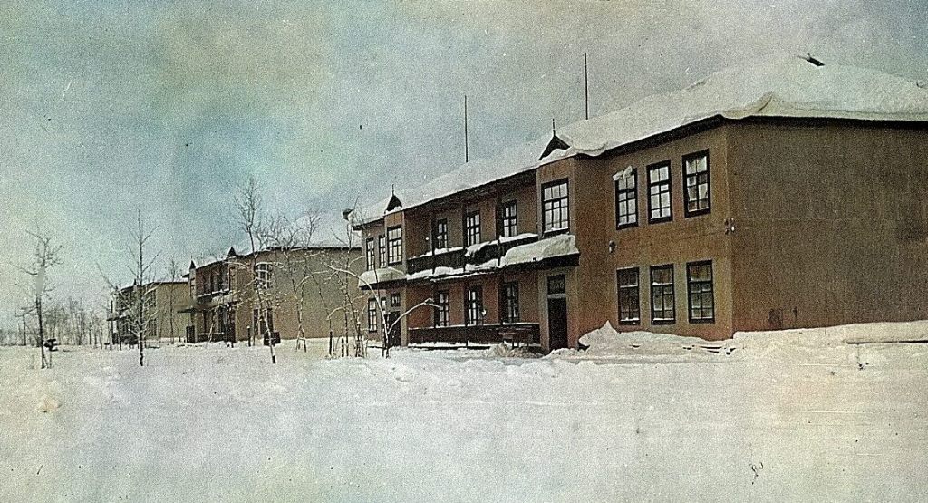 Фото №17 (архив Дорожевца А.Н.). Зима 1939-1940 г. – 3 дома «с балконами» для семей начсостава.