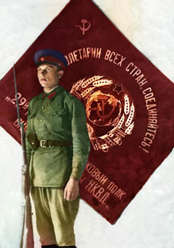 Форма бойцов и командиров стрелковых полков НКВД практически не отличалась от армейской. Во всяком случае, на черно-белой фотографии 30-х годов различить командира войск НКВД и командира Красной Армии почти невозможно. А вот от сотрудника госбезопасности обоих отличить довольно легко.