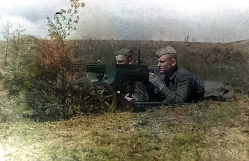 Фото №32 (архив Дорожевца А.Н.). 1942 г. – Пулеметный расчет в засаде у перевала.