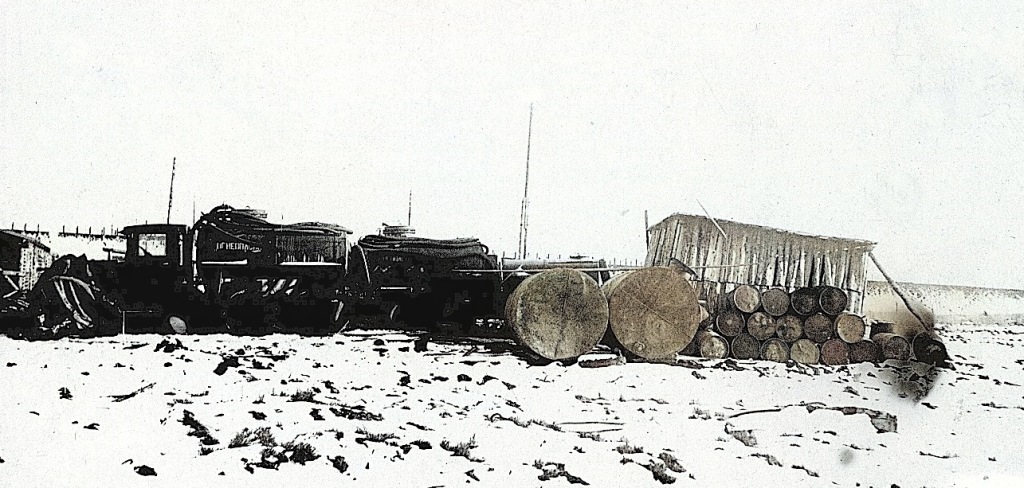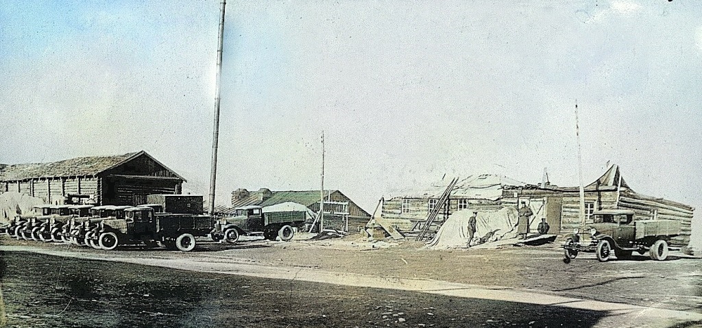 Фото №33 (архив Дорожевца А.Н.). Весна 1938 г. – Хозяйство автороты Колымского полка на берегу Колымы.