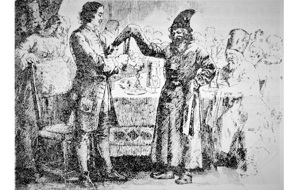 Потчевание провинившегося гостя кубком «Большого Орла». Худ. Н. Дмитриев-Оренбургский