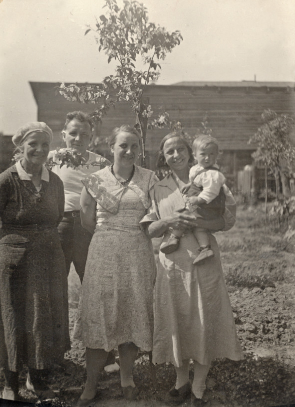 Перед войной (у сараев 2).Справа налево: Инга (на руках), Лина Федоровна (после войны управдом), ее сестра, муж Лины Федоровны (дворник, умер в блокаду)