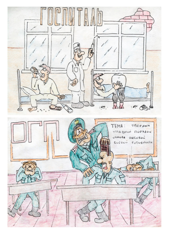 Во время еды деды всегда кричат «Рабочий!» и рабочий срывается стрелой на крик, приносит что они попросят: добавки, нож или еще хлеба. Если найдут в супе картошку не тонкой нарезки, то спрашивают: «Кто был на ЧК? Встать! Упор лежа!» тоже обычное дело – картошку надо нарезать очень тонко в суп, иначе нежный дедушкин желудок может поранится и не переварить толстые куски. Вместо киселя дедушки любят пить чай. В белых офицерских стаканах. Медленно, почмокивая и у всех на виду травя смакуя печеньем, конфетами или пряниками из запасов старшины.