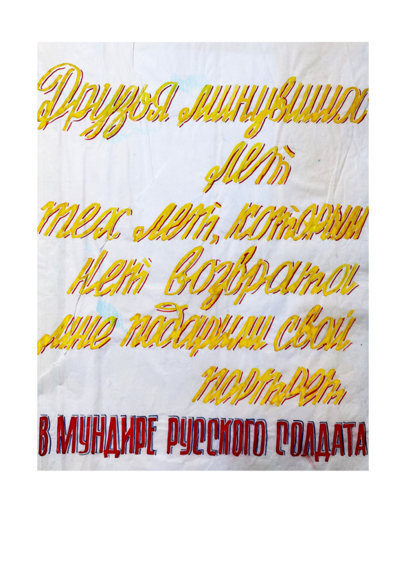 Всех солдат построили на плацу. Каждый из нас выходил и отдельно зачитывал текст Присяги и расписывался. Потом роту повели в Дом Офицеров, где показали спектакль. После состоялся праздничный обед и показали кино. Вот только что пришли. Уже 18 часов и вечер свободный. Полтора часа на личное время. Очень соскучился по вам. Обнимаю целую!