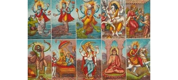 В облике рыбы Матсьяватары Господь спас Ману, Сатьяватру и Саптариши, семерых мудрецов и духовных сыновей Брахмы, вместе с их женами во время потопа. Бог Вишну принял вид черепахи Курмы, чтобы поддержать гору Мандара, начавшую погружаться в воду во время пахтанья океана. Затем, приняв вид Варахаватары, Бог сразил демона Хираньякшу и поднял землю из поглотившей ее пучины потопа.