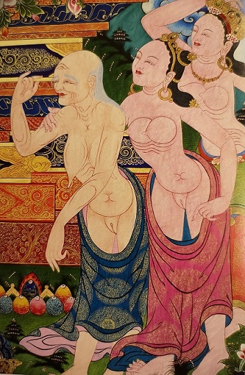 Однажды молодой брахман вышел погулять. В Вайшали моросил дождь, было холодно и промозгло. Брахман, поддавшись чувству, направился к старухе, вошел в дом и зарубил ее топором.