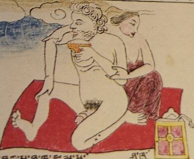 Но, как говорится, и на безоблачное небо набегают тучи. Однажды в царицу Аннатару вселился демон. Увидев во время скачек красивого брахмана Калагриву, она влюбилась в него. Страсть опалила ее сердце, и она возжелала юношу. Брахман был горяч. Увидев знаки царицы, он немедленно отозвался на ее призыв. Ночью в роще они предались любовным утехам. Калагрива недавно вернулся из далеких стран, где овладел искусством любви под названием «Бумбаржа калмыцкая», которое приводило царицу в неистовство. Она так полюбила эти забавы, что не позволяла брахману отойти от нее дальше, чем на взмах крыльев бабочки.