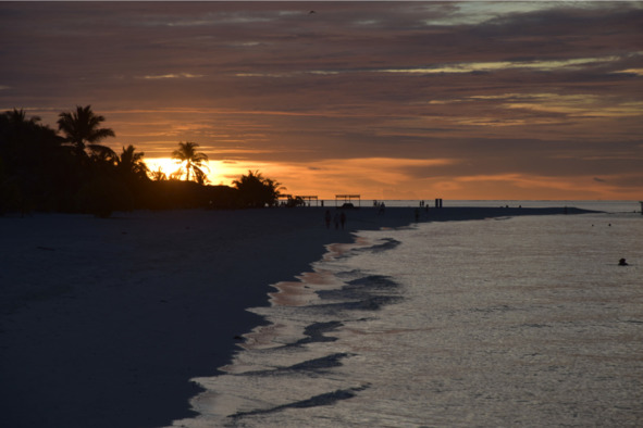 Встреча на пирсе, мелкие формальности, ключ от номера и вот мы в бунгало с выходом к морю и собственным лежаком на пляже. Пара мгновений – и теплые как парное молоко волны радостно приветствуют нас, принимая в свои объятия.