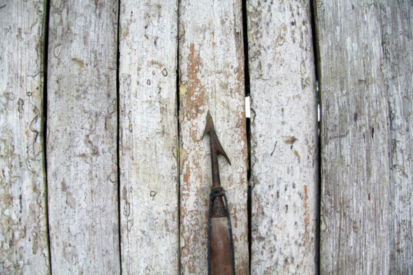 Металлический наконечник гарпуна предназначен для битья кайманов и крупной рыбы