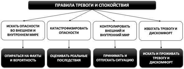 Наглядно и схематично квартет вышерассмотренных правил тревоги и альтернативных им правил спокойствия можно представить следующим образом (см. рис. 17):