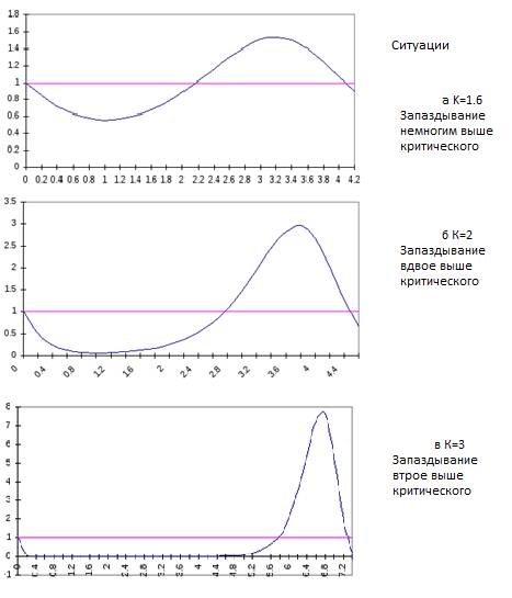 колебания при возрастании запаздывания.