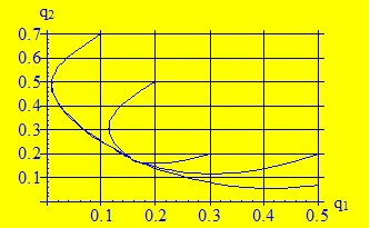 Из (44) и (45) получаем две точки равновесного раздела ресурса ) и). Для состояния ) условие , выполняется всегда, в то время, как ) ему не удовлетворяет. Аналогичный результат получается при исследовании итерационной процедуры.