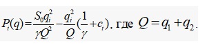 Для случая дуополии (n=2) функцию выгоды для каждого из соперников равна: