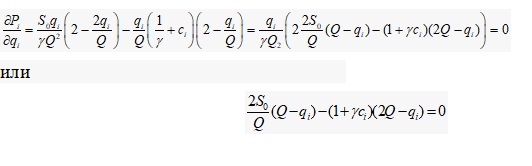 Каждый из соперников стремиться максимизировать свою выгоду, влияя на уровень доходности p через долю освоенного ресурса. Исходя из соображений, изложенных в §24, что φ(, γ, p)=, получаем