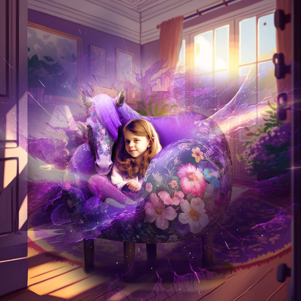 Никто не отзывался. Они ускакали от драконов уже далеко, а дворца ещё не было видно. Может, мимо проедет какая-нибудь принцесса или рыцарь или хотя бы табуретка пробежит? «Им же тут всем фиолетово», – вспомнила Ляля и испугалась по-настоящему. Вдруг солнце закрыла фиолетовая туча. Ещё и под дождь попаду! Ляля обхватила себя руками и плотнее вжалась в кресло. Однако вместо стука капель она услышала голоса: