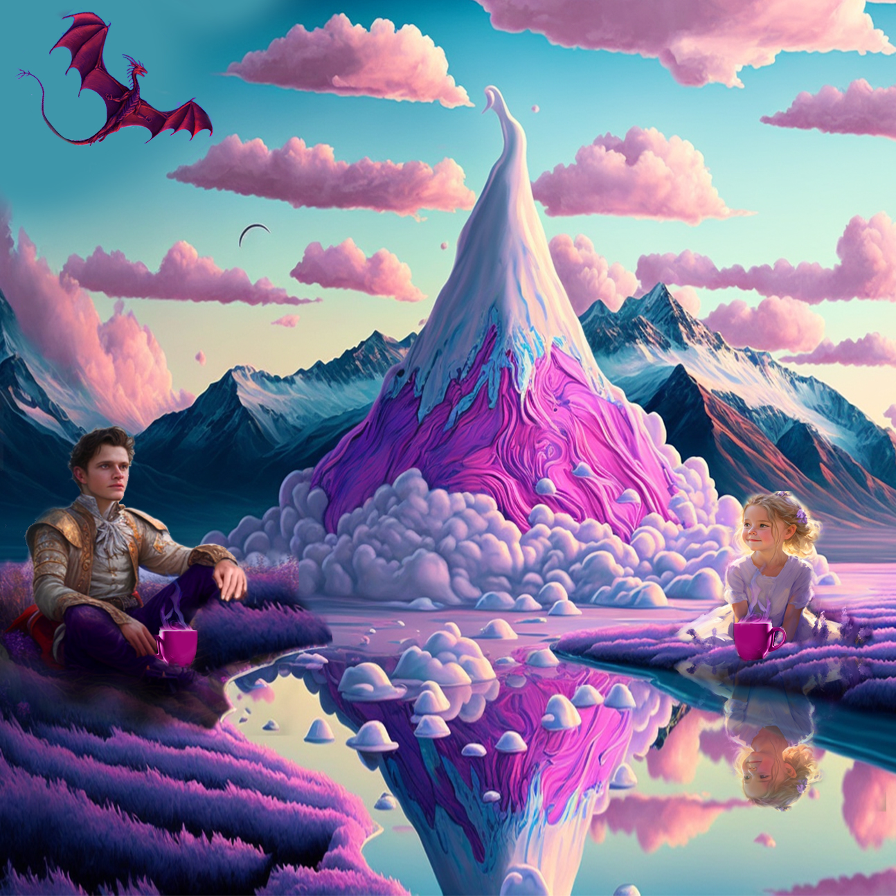 Дракон опустил крыло, как трап, а когда Ляля, принц и кресло взобрались, расправил крылья и взмыл в небо. Ляля посмотрела на стремительно уменьшающийся луг, зажмурилась и вцепилась в рукав принца. Какое-то время тишину нарушал только шум крыльев дракона, но вдруг раздались взрыв и шипение. Ваня начал снижаться, и Ляля испугалась ещё больше. Однако ничего страшного не произошло. Дракон мягко приземлился на задние лапы, и пассажиры оказались на берегу шоколадной реки. Кусочки мороженого, выброшенные извержением, таяли в горячих волнах. У каждого уважающего себя принца есть при себе рюкзак с полезными вещами. Из такого рюкзака Не-суй-нос-не-в-своё-дело достал кружку и угостил Лялю ароматным шоколадом с восхитительными белыми шариками. Сам принц начал пить, только когда мороженое растаяло. Он часто летал высоко-высоко в небе, а там очень холодно, и принц застудил горло.