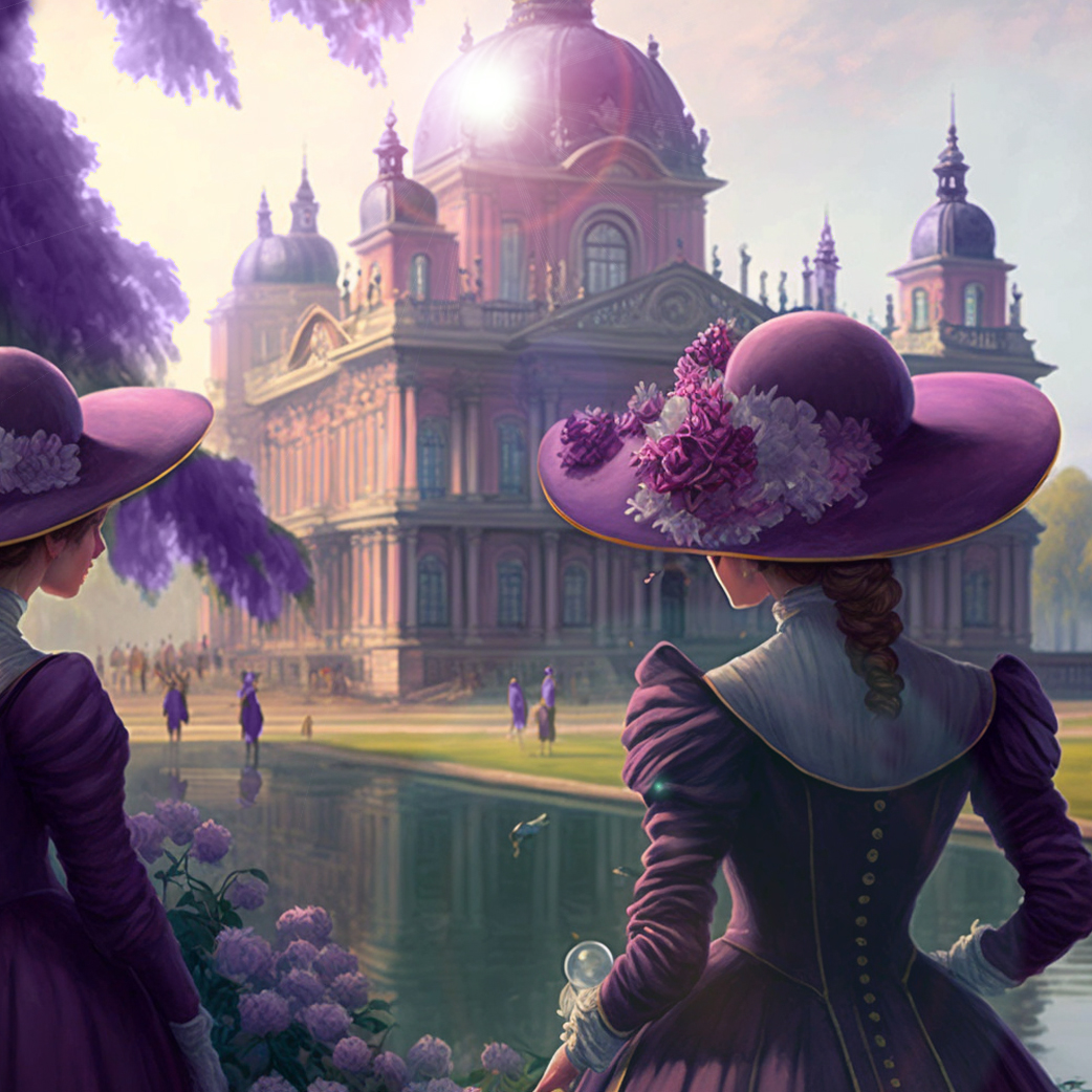 По парку вальяжно прогуливались две молодые дамы в фиолетовых шляпках с бантами. Заметив принца, дамы принялись кокетничать.