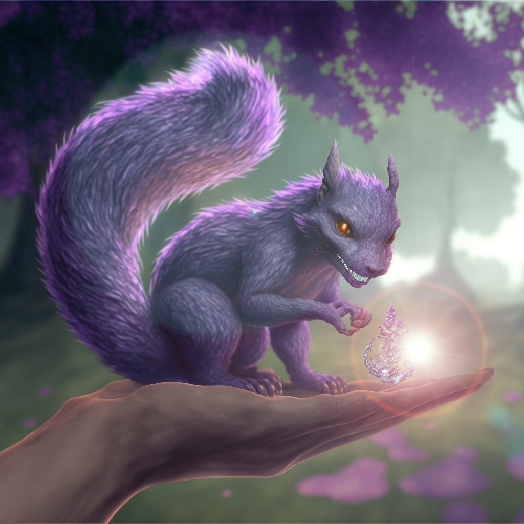 Зверёк был совсем маленьким, скорее не белка, а бельчонок, и шерсть на нём росла нежно-лиловая.