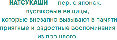 Лирическое отступлениеВ какой-то момент у меня появился соблазн называть придуманный мной подход японским словом натсукаши. (В книге я рассказываю о многих явлениях и тонкостей, которые трудно описать одним русским словом.) Как думаете, стоит вместо якорей или триггеров использовать слово натсукаши?