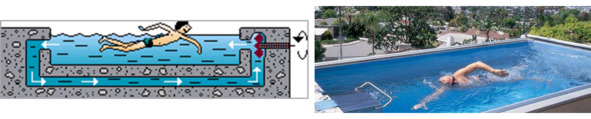 Подобно беговой дорожке было создано устройство для тренировки пловца. Это не большой бассейн. Пловец на месте, а движется вода23 (рис. 1.45).