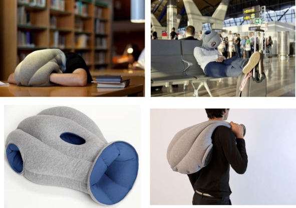 Придумали устройство, закрывающее всю голову (рис. 1.51). Это, по существу, подушка Wrap-a-Nap. Мягкая плюшевая подушка оборачивается вокруг головы и застегивается на липучку, делая сон приятным и удобным в любом месте и в любое время. Офисная подушка окутывает голову, поэтому закрывает глаза, как маска для сна, и закрывает уши и не нужны беруши. Подушка разработана в дизайнерской студии Kawamura Ganjavian (Мадрид).