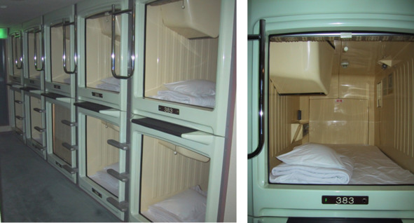 В Японии из-за высокой стоимости недвижимости в центральный районах больших городов (Токио, Киото) предложили использовать капсульные отели.