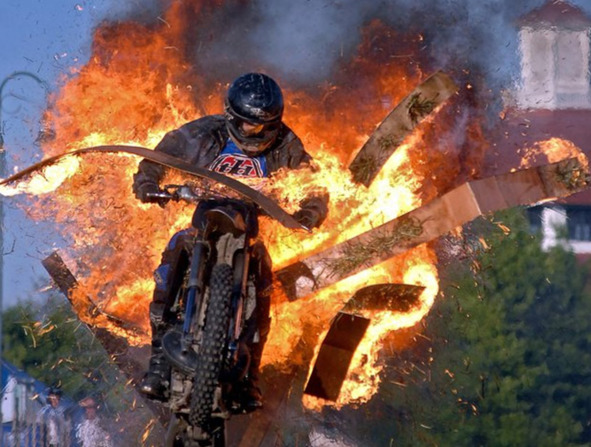 Каскадер проезжает через огонь на очень большой скорости (рис. 1.62).