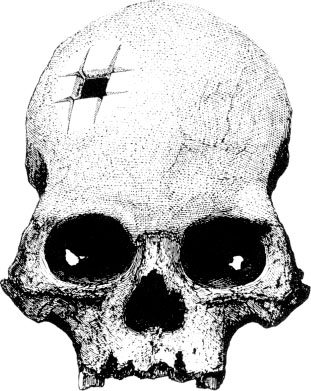 Трепанирование – древнейшая хирургическая практика. Она упоминалась Гиппократом, который описывал ее как рутинную операцию. Но ее происхождение остается неясным. Почти как сегодня, древние греки трепанировали пилой коронообразной формы. Ничто не указывает на то, что греки или их предки проводили операцию другими методами. Но на черепе из Перу она проведена иссечением прямоугольного фрагмента…» (из речи П. Брока перед членами Французской Академии медицины).