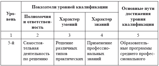 Описание уровней квалификации