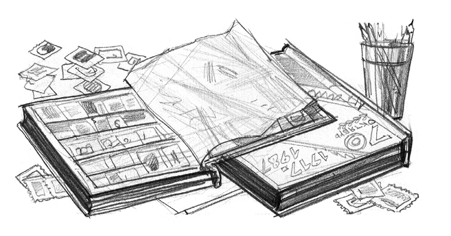 Он походил по квартире, увидел на полке альбом с марками и говорит: