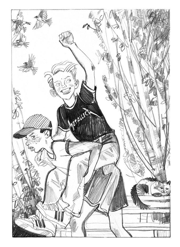 – Не скидывай, пожалуйста! Меня мать убьет! Я в новых кроссовках и джинсах!