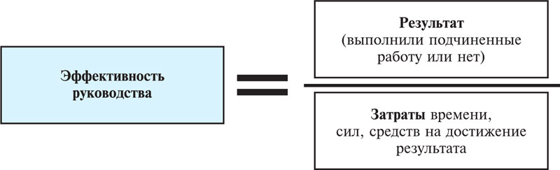 В соответствии с базовым принципом эффективности мы можем определить эффективность руководства как соотношение результата (выполнили подчиненные работу нужным образом и в срок или же нет) и затрат времени, сил, средств со стороны руководителя на то, чтобы результат был достигнут.