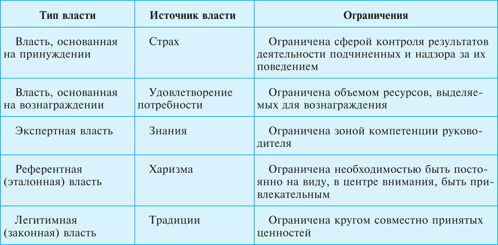Любой руководитель должен иметь в своем распоряжении определенные средства, с помощью которых он может оказывать воздействие на своих подчиненных, – источники власти.