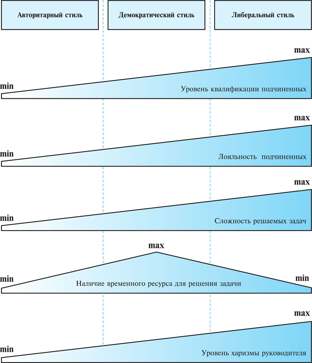 Немецкий психолог Курт Левин еще в 30-е годы XX века провел серию экспериментов, на основе которых выделил три стиля руководства (рис. 1.3): авторитарный, демократический, либеральный. Позже появились многие другие классификации стилей руководства; и сегодня психологи, социологи, политологи все еще продолжают изучать этот вопрос.