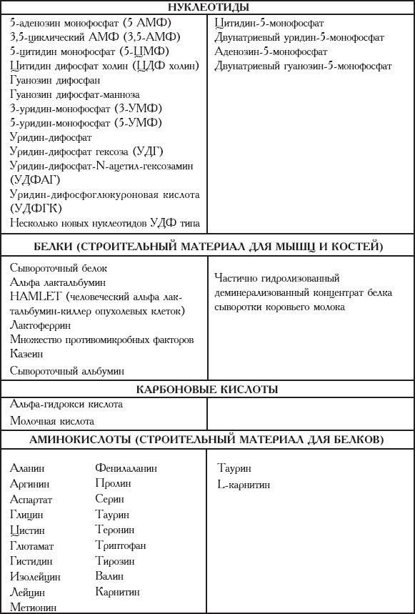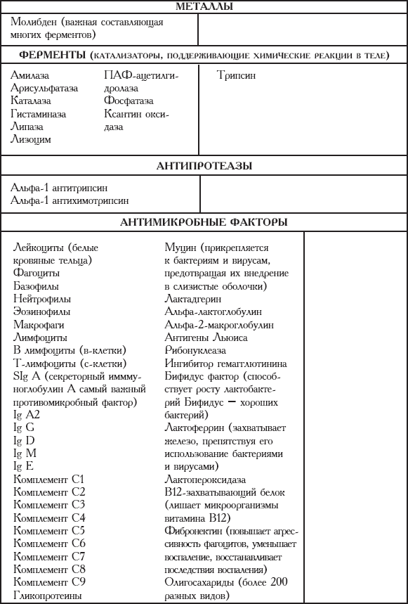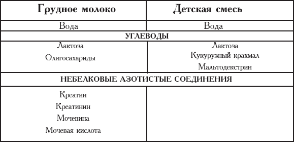 Сравнительная таблица состава грудного молока и адаптированной смеси