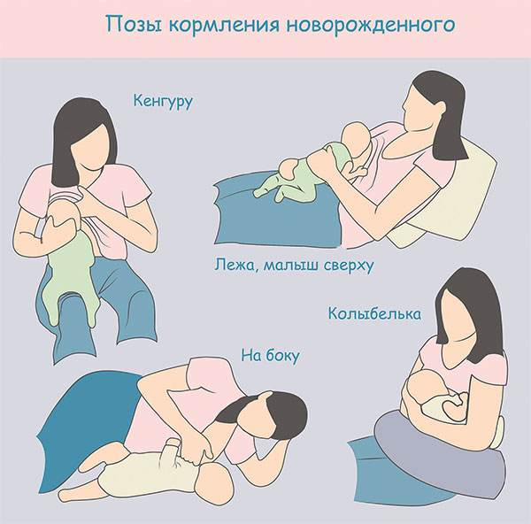 Очень важный момент – выбор правильного положения для кормления. Главное, чтобы матери было удобно, потому что неправильное положение повлечёт за собой боли в спине и шее, которые переходят в головные боли. Помните, что для ребёнка главное – это здоровая и счастливая мама, которая сможет понять и адекватно отреагировать на его сигналы. А какая адекватность может быть, если кроме боли вы не можете ни о чём думать?